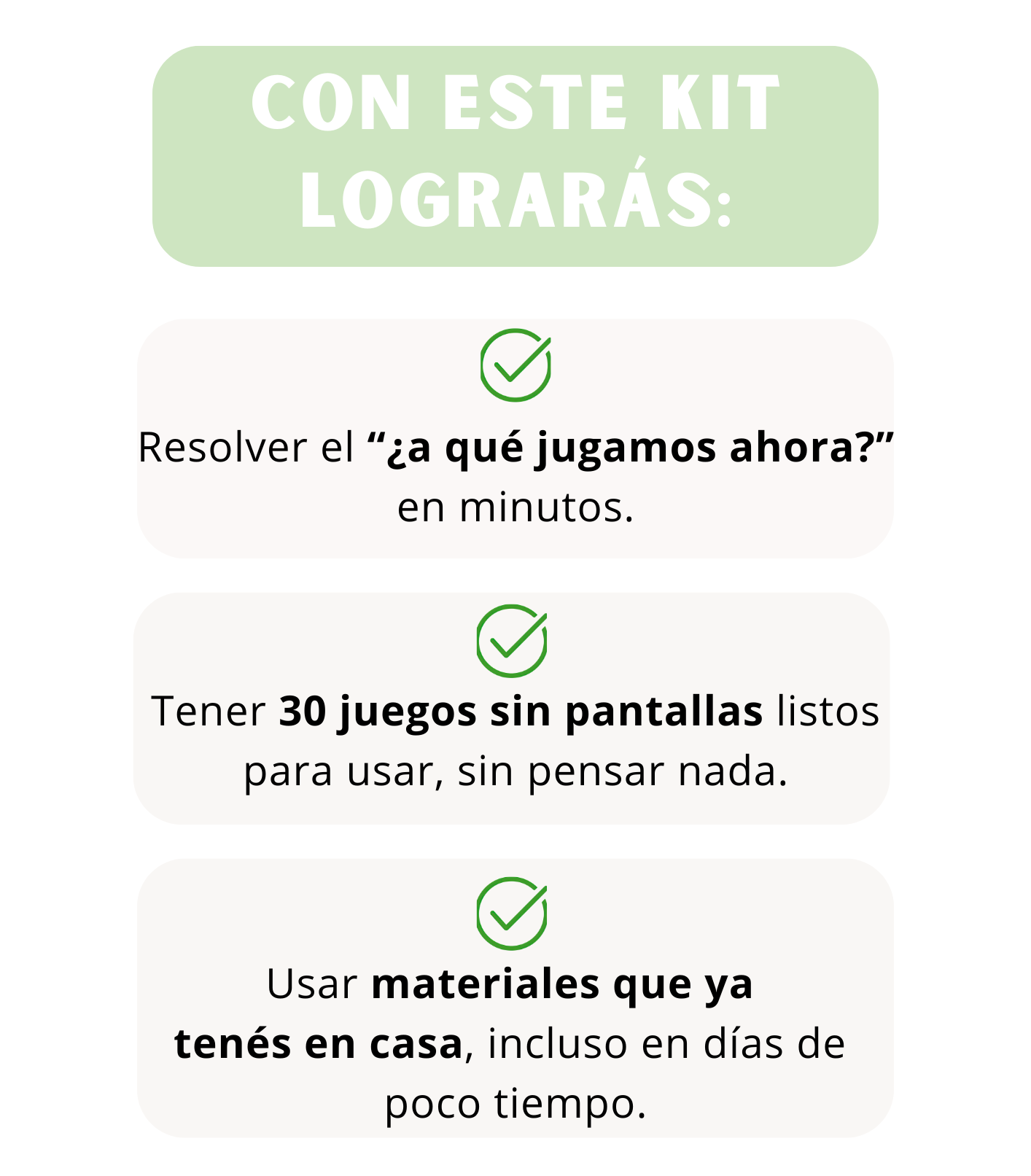“Llegaba la tarde y ya no sabía qué hacer para que no termine con la tele. Este kit me salvó más de una vez. Son juegos simples, con cosas que tenemos en casa.”