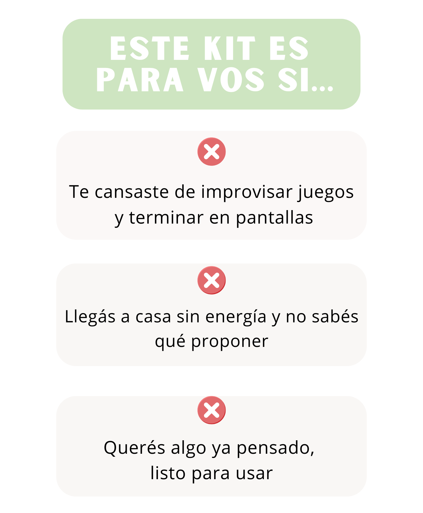 Nada. Volvés al kit y elegís otra propuesta. El valor no está en un solo juego, sino en tener siempre alternativas.